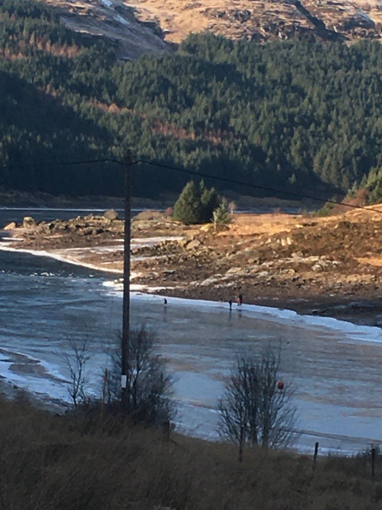 A DDAC member captured this image yesterday up at Loch Tarsan, it shows two children a good bit out on the thin ice and a male adult on the bank, what you won’t see in this photo is that the adult was throwing large lumps of ice high in the air, and crashing down on the ice surface where his children were.