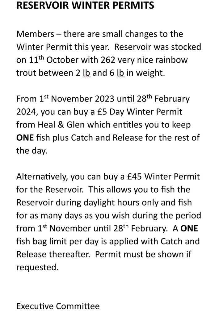 Reservoir Winter Permits Posted by dunoonangling on November 9, 2023 Posted in: Reservoir. Leave a comment Posts navigation ← A visitors day at the reservoir Jimmy Docherty Rover Challenge Trophy →