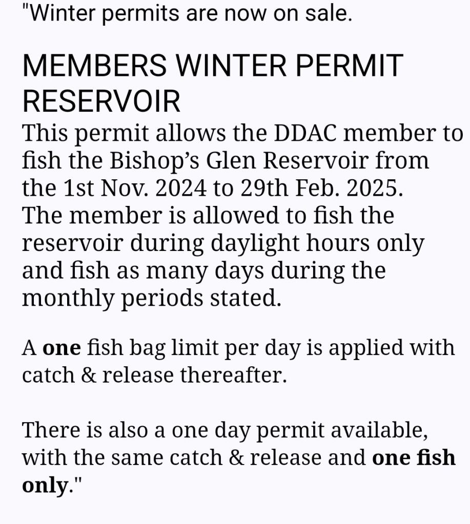 Winter Permits Posted by dunoonangling on November 3, 2024 Posted in: Reservoir. Leave a comment Posts navigation ← Ruel Salmon Dunoon and District Angling Club 1949-1999 →