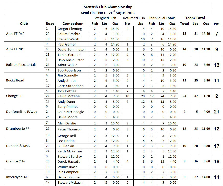 If it had come down to deciding it on weight Keith would still have won with 9lbs 9ozs, next would have been John with 6lbs 14ozs followed by Ronnie with 6lbs 12ozs. So quite tight !
