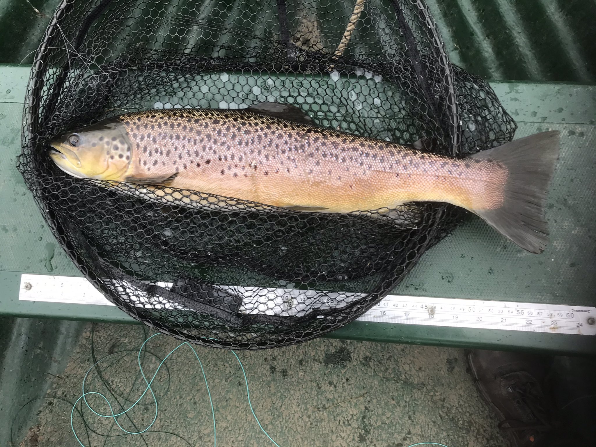 “Fished Loskin early Sunday morning. It looked quite mysterious in the morning haar. Caught a lot of fish between the 4-8 oz mark. Had 3 fish for around 5lb 8oz. Caught them on a size 12 orange Montana and a size 12 viva cormorant.”